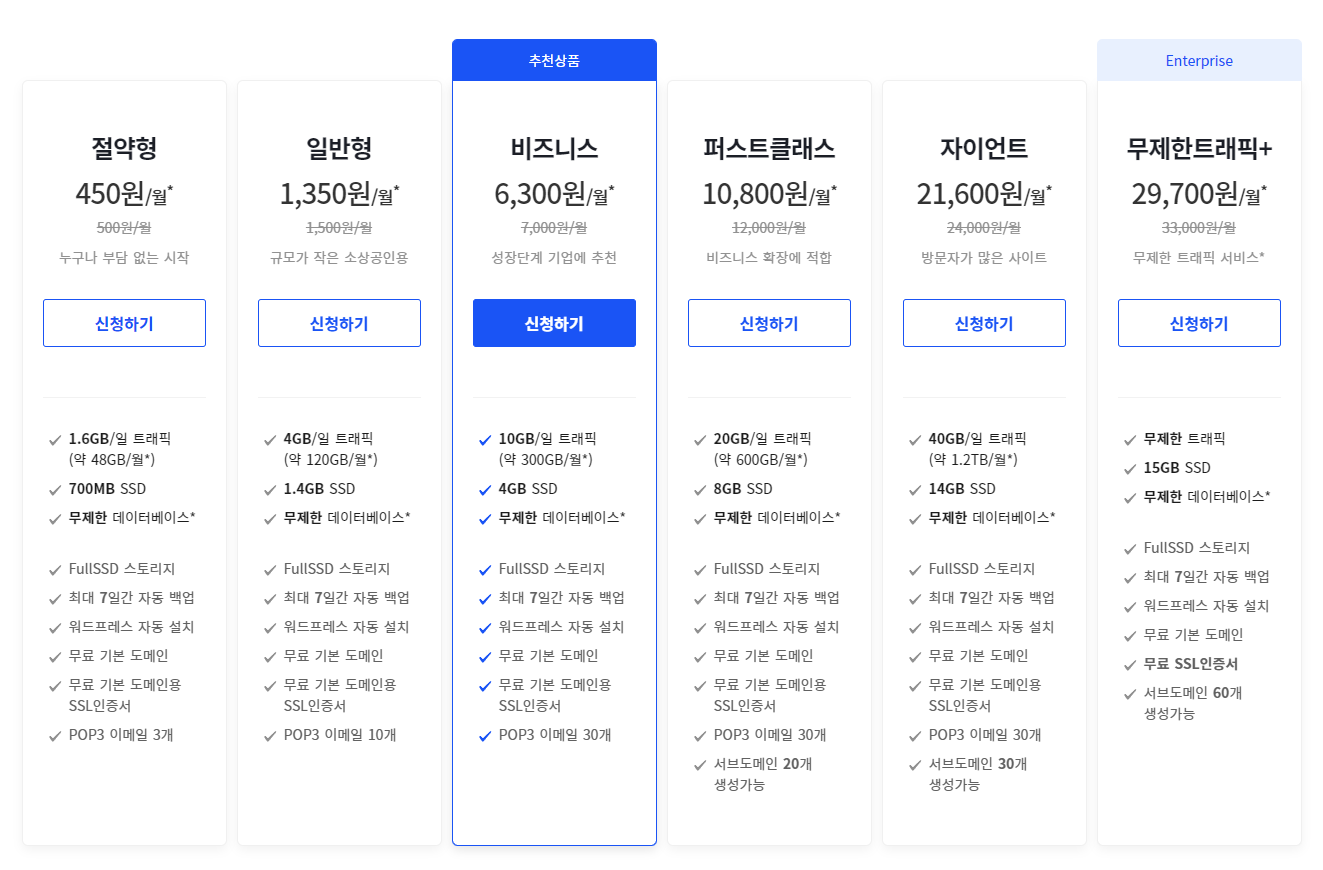 웹호스팅 가격