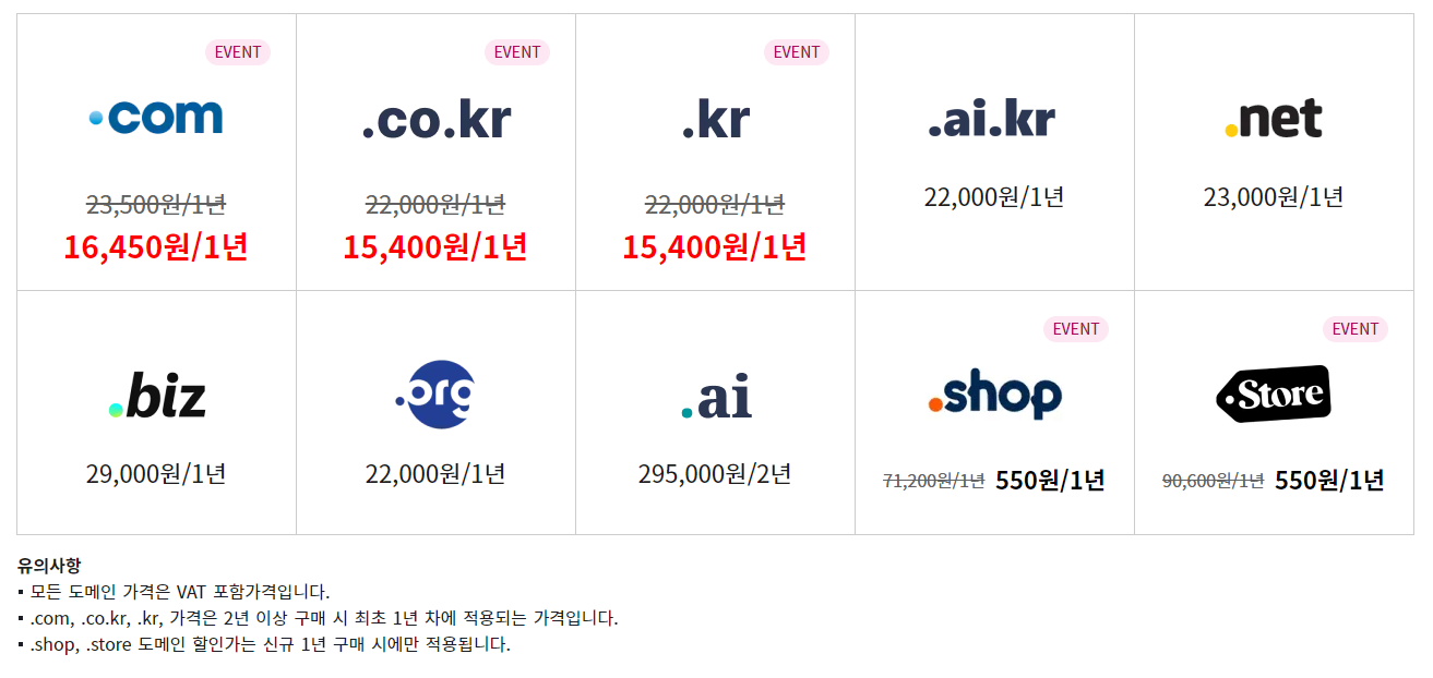 [ ■ 카페24 도메인 가격 알아보기 ■ ]